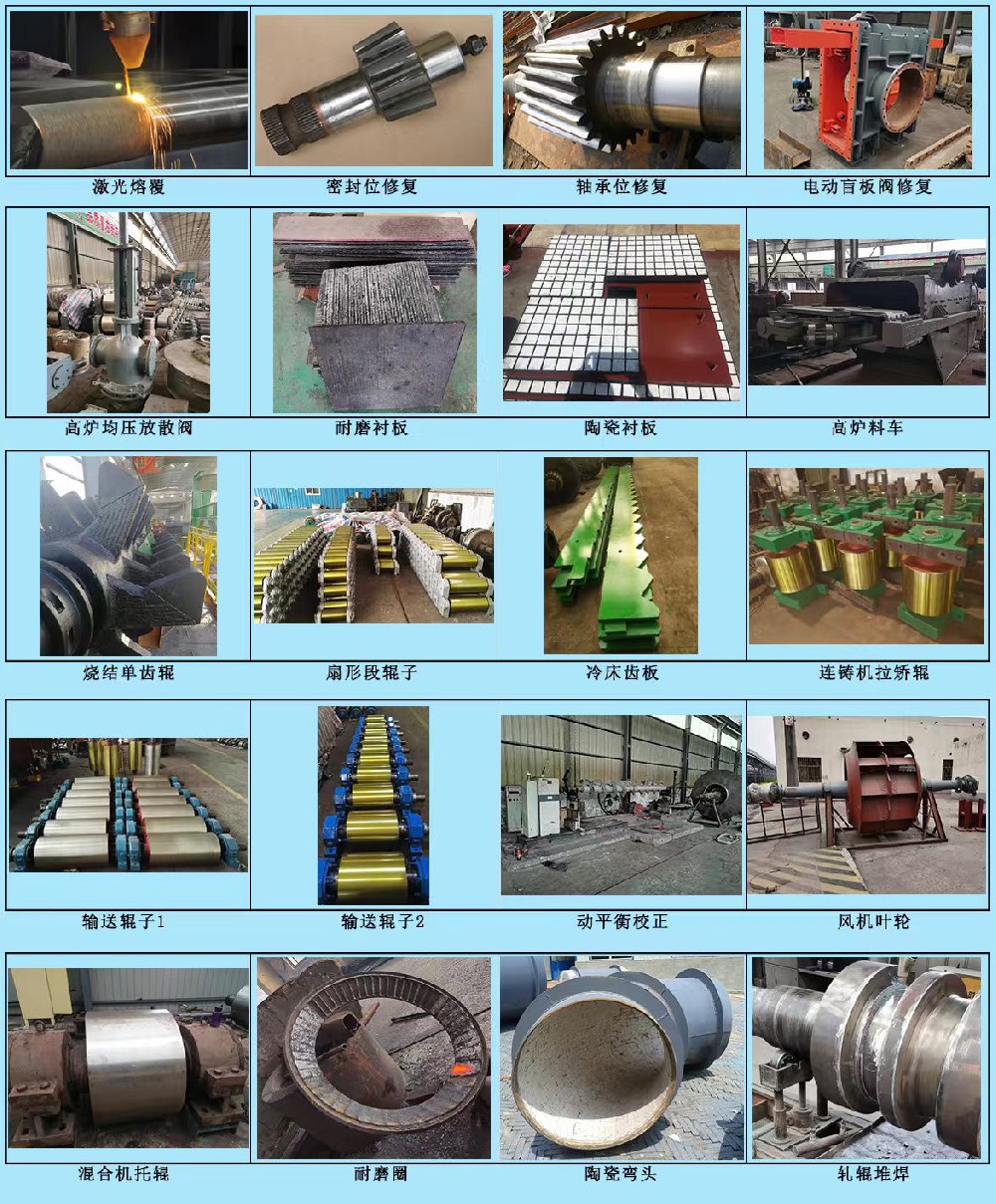 公司致力于硬質(zhì)耐磨材料的技術開發(fā)及應用、激光熔覆修復、中速磨磨輥、單齒輥破碎機轉(zhuǎn)子、篦板、四輥輥子、連鑄輥和耐磨輸送輥的加工和修復,軋輥修復、各類閥門修復、旋轉(zhuǎn)設備平衡實驗、耐磨合金板及陶瓷襯板等的制作與安裝、機械設備檢修服務。