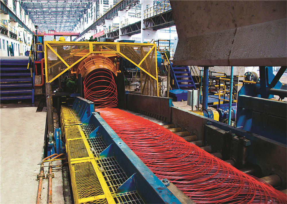 精品高線生產(chǎn)線年產(chǎn)能70萬(wàn)噸,關(guān)鍵技術(shù)和高速區(qū)核心工藝和設(shè)備由美國(guó)摩根公司設(shè)計(jì)和提供,全線自動(dòng)化和傳動(dòng)系統(tǒng)由ABB公司負(fù)責(zé)設(shè)計(jì)和集成,使產(chǎn)品在質(zhì)量、性能和成本等方面都具有很強(qiáng)的市場(chǎng)競(jìng)爭(zhēng)能力。該生產(chǎn)線采用國(guó)際上先進(jìn)適用的生產(chǎn)技術(shù)和裝備,最大終軋保證速度為112m/s,采用熱裝熱送工藝及世界上先進(jìn)的精軋機(jī)“8+4”型式等,可實(shí)現(xiàn)熱機(jī)軋制工藝技術(shù)、全線的數(shù)字化控制和在線測(cè)徑技術(shù)、全線的控軋控冷技術(shù)、在線HotEye熱眼影像式表面質(zhì)量檢測(cè)技術(shù)。生產(chǎn)的線材內(nèi)部組織均勻,橫斷面上晶粒度差小于1級(jí),通條性能均勻,氧化鐵皮少。產(chǎn)品規(guī)格:?5mm~?25mm,主要產(chǎn)品為軸承鋼、彈簧鋼、冷鐓鋼、簾線鋼、易切削鋼等。應(yīng)用于軸承、汽車、風(fēng)力發(fā)電、橋梁建筑等領(lǐng)域,是一條具有國(guó)內(nèi)一流、國(guó)際領(lǐng)先水平的高速線材生產(chǎn)線。